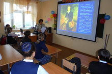 Яр Буе морквашы китапханә мөдире һәм әдәбияты укытучысы Гиниятова. Н.А. 8сыйныф укучыларын Алексей Костантинович Толстой иҗаты белән таныштырды. "Блестящая сатира һәм тонкая лирика" дигән чара язучынын 200-еллыгына багышланган иде