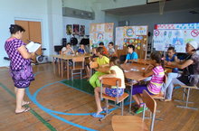 в пришкольном лагере «Радуга» МБОУ «Набережно-Морквашская СОШ»Но вот воспитатели приглашают в сельскую библиотеку, и все рассаживаются по своим зрительным местам. Митинг начался. Вступительное слово заведующей Набережно-Морквашской библиотеки Прохоровой Ильмиры.