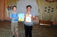 Авыл китапханәсенең мөдире Прохорова Ильмира Тюрин Артемга Г. Тукай буенча эше өчен 2 диплом һәм бүләк тапшырды.
