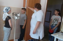 Авыл фельдшеры Васильева Татьяна балаларның буен һәм авырлыгын үләчәде.