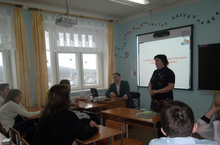 В конкурсе «Классный руководитель года- 2014» нашу школу приставляла учитель английского языка и классный руководитель 9 класса Хохлова И.В. Она достойно выступила на конкурсе и победила в номинации «На одной волне с детьми». -