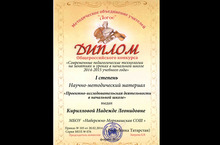 Учитель начальных классов Надежда Кириллова приняла участие в общероссийском конкурсе «Современные педагогические технологии на занятиях и уроках в начальной школе». Она поделилась опытом работы по теме «Проектно-исследовательская деятельность в начальной школе» и была награждена Дипломом Первой степени.
