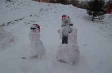 Погода в декабре предоставляет нам много сюрпризов, то крепкие морозы, то оттепели. И всё же ученики выбрали момент и вылепили из снега фигуры.