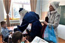 Чтобы создать предновогоднее настроение учащихся Дед Мороз и Снегурочка угостили обучающимся начальных классов мандаринками и подарили сувениры. Сколько было радости у детей!