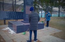 1 декабря юнармейцы школы провели уборку территории памятника участникам Великой Отечественной войны. Ребята очистили постамент от мусора, убрали листву, подмели дорожки.