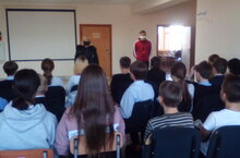Инспектор ПДН МО МВД РФ "Верхнеуслонский" М.А.Иванова, учащимися средних и старших классов, провела беседу по технике безопасности во время осенних каникул.
