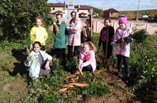 Наступила осень. Настала пора собирать овощи на пришкольном участке. Все ребята Набережно-Морквашской школы принимали активное участие при сборе урожая.Көз җитте. Мәктәп яны участогында яшелчә җыярга вакыт җитте. Яр буе Морквашы мәктәбенең барлык укучылары да уңыш җыюда актив катнаштылар. -