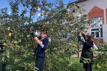 «Игелекле эшләр атнасы» акциясе кысаларында безнең 10 нчы сыйныф укучылары сыйныф җитәкчесе Надежда Леонид кызы белән бергә мәктәп яны участогында алма уңышын җыюда катнаштылар. -