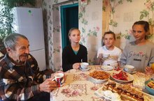Өлкәннәр көне алдыннан Яр буе Морквашы гомуми белем бирү мәктәбендә 6 нчы - 7 нче сыйныф укучылары сыйныф җитәкчесе Баданина Алевтина белән бергә Бөек Ватан сугышы ветераны Якимов Василий Яким улын туган көне белән котладылар. -