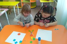 Сегодня в старшей возрастной группе МБДОУ «Нижнеуслонский детский сад» прошло занятие по аппликации на тему «Украшение платочка». Где дети учились выделять углы, стороны квадрата, преобразовывать форму, разрезая квадрат на треугольники, круг на полукруги. Закрепляли умения составлять красивую композицию и аккуратно наклеивать изображения. Дети хорошо выполнили поставленные задачи и с удовольствием рассматривали свои платочки.