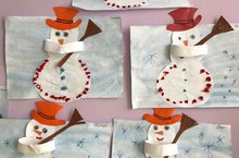 Сегодня в старшей разновозрастной группе МБДОУ «Нижнеуслонский детский сад» ребята делали аппликацию. Сложив пополам лист бумаги вырезали по силуэту снеговика.