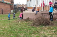 При уборке территории детского сада принимали участие не только сотрудники, но и воспитанники принимали в этом активное участие, ведь к труду нужно приучать детей с раннего детства.