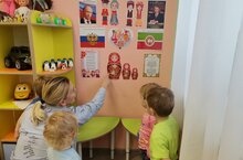 Воспитатель Татьяна Гущина рассказала малышам, что матрешку неслучайно называют народной, потому, что она сделана добрыми руками русских людей.