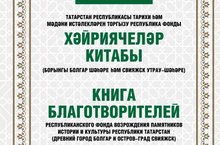 Включение в памятную Книгу благотворителей – одна из форм поощрения участников проекта «Культурное наследие Татарстана: древний город Болгар и остров-град Свияжск». В нее вносятся данные о юридических и физических лицах, оказавших поддержку фонду, независимо от размера благотворительного вклада. Книга хранится в самом фонде «Возрождение», а также трех музеях-заповедниках республики. Ознакомиться с электронной версией книги может любой желающий. Во все 6 томов внесены имена 48 тыс. благотворителей. Те, кто внес наиболее значительный вклад в возрождение Болгара и Свияжска, получают также благодарственные письма Фонда.