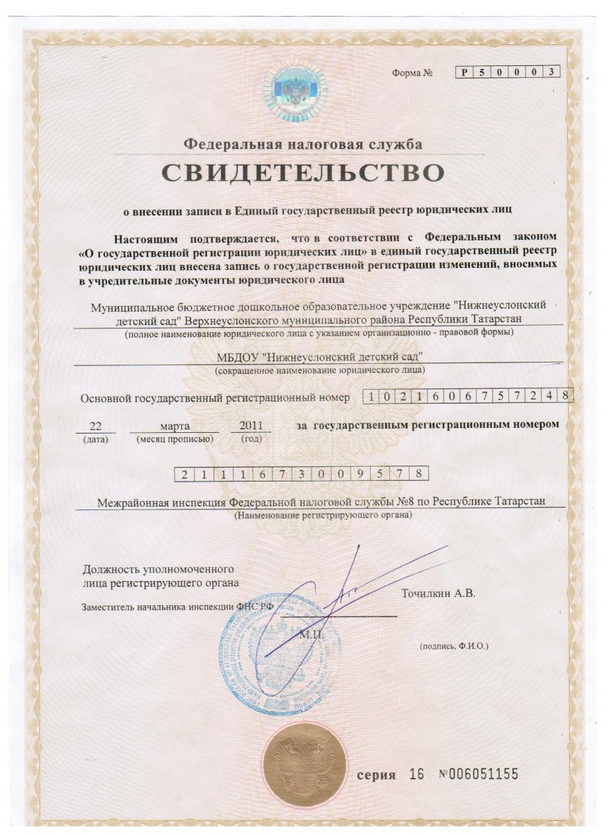 Короткое название: МБДОУ "Нижнеуслонский детский сад"