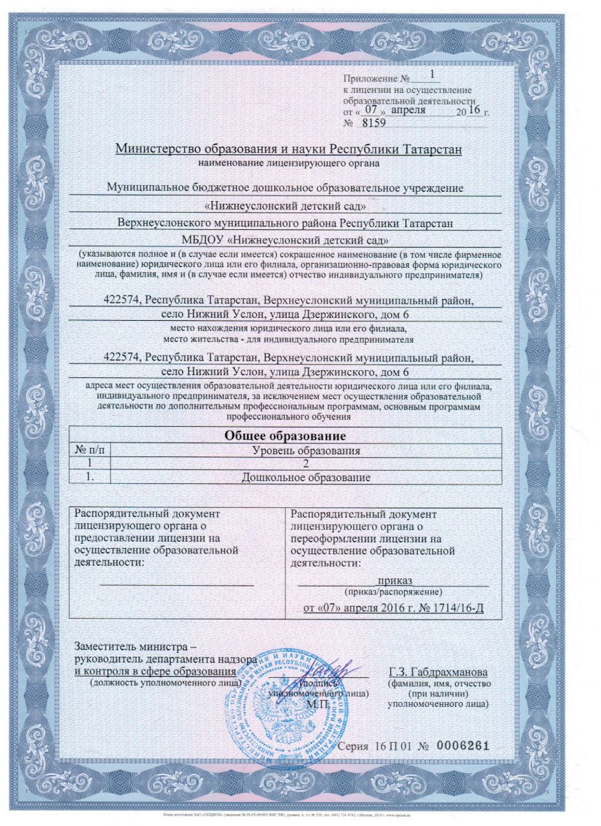 Адрес: 422574, Республика Татарстан, Верхнеуслонский район, с. Нижний Услон, ул. Дзержинского, д. 6