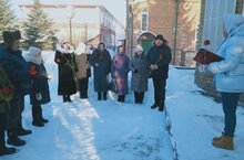 Участники митинга возложили цветы к памятнику, почтили память защитников Отечества минутой молчания. -