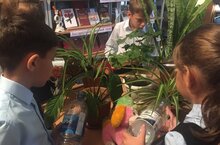 Пересадили цветы в горшках, обновили землю. Теперь в помещении школы зацветут обновленные растения.