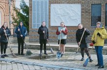 В субботу вышли всем школьным коллективом на уборку прилегающей к школе территории. Сгребли и подмели мусор