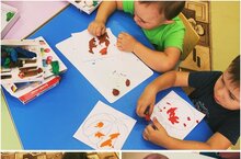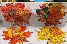 Мы с детьми младшей группы МБДОУ “Октябрьский деткий сад” попробовали запечатлеть красоту осенних кленовых листьев с помощью красок. Шаблон кленового листа воспитатель Маргарита Сергеевна распечатала и сделала несколько заготовок. В процессе рисования жёлтая и красная краска смешивались,и в некоторых случаях получились ярко-оранжевые оттенки. Листья получились разноцветные,яркие и красивые.