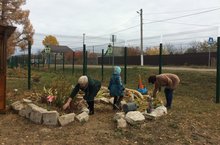 В МБДОУ «Октябрьский детский сад» трудовая неделя работников началась с уборки территории садика, сбора семян растений и подготовки к предстоящей зиме.