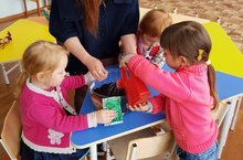 В МБДОУ «Октябрьский детский сад» воспитанники младшей группы приобщаются к полезному труду. Воспитатель Назарова М.С. проводит занятия в области познавательно-исследовательской деятельности по окружающей среде.