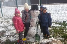 Первый снег 12.10.2015 На улице осень, а воспитанники МБДОУ «Октябрьского детского сада» радовались выпавшему первому снегу. 12 октября на прогулке ребята наблюдали за растениями, которые остались под снегом, вспомнили стихи и песни про снег и снежинки. Ребята интересно и с пользой провели время, даже удалось поиграть в снежки и слепить веселого снеговика.