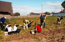 4 сентября учащиеся 6-8 классов вместе с учителями вышли копать картошку.