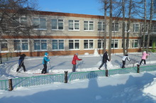 Ученики 3-го класса МБОУ «Октябрьска СОШ» на уроке физической культуры, вместе со своим учителем Гизатулиным Р.Х. проложили лыжню на территории школы для учащихся 1-го класса.