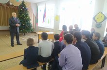 15 декабря в МБОУ «Октябрьская СОШ» совместно с сельской библиотекой прошел урок Мужества для учащихся 5-11 классов. На мероприятии почетными гостем был Хайруллин Газинур Гарифзянович - второй пилот воздушного корабля "Ил-76" авиакомпании "Аэростан", капитан запаса, Герой России, председатель Общественной организации «Герои Татарстана».
