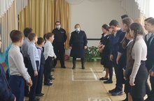19 марта 2021 года в преддверии весенних каникул в МБОУ «Октябрьская СОШ» прошла встреча со старшим инспектором ПДН МО МВД «Верхнеуслонский» Колезневой Аидой Равилевной и старшим лейтенантом полиции Багровым Эмилем Радиковичем. Аида Равилевна и Эмиль Радикович провели беседу с учащимися 1-11 классов. 19нчы март көнне, язгы каникуллар алдыннан, МБГББУ «Октябрь урта гомумбелем бирү мәктәбе»ндә Югары Ослан районы эчке эшләр бүлегенең ПДН өлкән инспекторы Колезнева Аида Равил кызы һәм полиция өлкән лейтенанты Багров Эмиль Радик улы белән очрашу булып узды. Аида Равил кызы һәм Эмиль Радик улы 1-11 сыйныф укучылары белән әңгәмә үткәрделәр.
