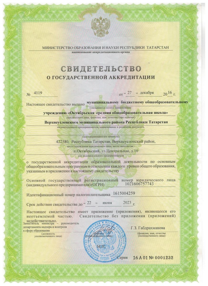 муниципальное бюджетное общеобразовательное учреждение «Октябрьская средняя общеобразовательная школа» Верхнеуслонского муниципального района Республики Татарстан/Татарстан Республикасы Югары Ослан муниципаль районы “Октябрь урта гомуми белем бирү мәктәбе” муниципаль бюджет гомуми белем бирү учреждениесе