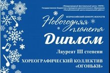 Хореографический коллектив Детской школы искусств «Огоньки», под руководством Полины Каримовой приняли участие во Всероссийском конкурсе искусств «Новогодняя планета», организованный Международным фестивальным центром «Ритм» и ГБУ ДО «Республиканский центр внешкольной работы».