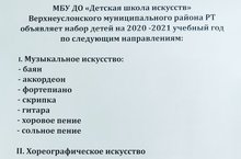 Верхнеуслонского муниципального района РТ объявляет набор детей на 2020 -2021 учебный год