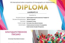 Команда Творческого Движения «Вдохновение» поздравляет хореографический коллектив «Конфетти» и его руководителя Нину Валентиновну Антонову с окончанием VIII Международного онлайн-конкурса для хореографических коллективов, который стартовал со 2 по 16 июня, а с результатами ознакомились в преддверии учебного года.