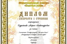 Поздравляем преподавателя художественного отделения Д.А. Гаврилову и ее ученицу Руденченко Марию с победой на Международном конкурсе «Золотые руки» в г. Новосибирск.