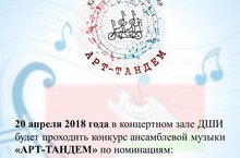 20 апреля 2018 года в 15.00, в концертном зале Детской школы искусств будет проходить конкурс ансамблевой музыки "Арт-тандем".Вход свободный. -