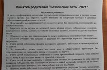 Воспитатель МБДОУ «Ямбулатовский детский сад» Гулина Ахметзянова еще раз напомнила родителям об их ответственности за жизнь и здоровье детей в дни летних каникул. В группу отправлены памятки: