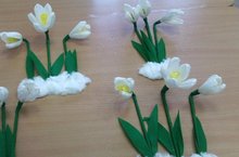 На занятии по изобразительной деятельности, воспитатель Коновалова Н.А. с детьми изготавливали искусственные подснежники. Так же в этот день была проведена беседа о весенних первоцветах. Затем ребята просмотрели презентацию "Первоцветы из Красной книги". Воспитатель рассказала, что подснежник является единственным растением, способным выживать в суровых условиях ранней весны.