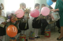 Ребята рассказали стихи, спели песенки и преподнесли первоклассникам подарки, сделанные своими руками.