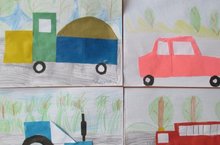 Сюжеты для рисования в старшей группе: «Ваза» - ребенок рисует контур вазы и аккуратно заштриховывает её карандашом, «Цветик-семицветик» и «Жарптица» - по мотивам сказок, «Улица» - композиция из деревьев, домов, машин и людей.
