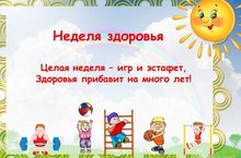 Согласно плану мероприятий о проведении Недели здоровья с 20.06-25.06.18, в МБДОУ Верхнеуслонский Детский сад « Солнышко» были проведены мероприятия, направленные на укрепление здоровья детей, развитие двигательной культуры, приобщение детей и родителей к здоровому образу жизни, воспитание в детях упорства, силы воли, умения преодолевать препятствия, умения побеждать и проигрывать; желания оказывать помощь, закрепление у детей понятия «здоровье».