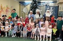 , а в музыкальном зале стоит украшенная ёлка. Лесную красавицу просто так из детского сада отпустить нельзя, ведь она подарила детям столько радости!