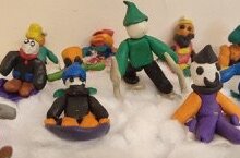 Зима! Какая радостная пора! Кто с горы на санках катится, кто на лыжах бегает, кто лепит снеговика, а кто играет в снежки. До чего же всем весело, радостно и даже холод нипочем! Ребята подготовительной группы совместно с воспитателем Цмиевой С.Р.сделали поделки из пластилина – играющих детей, на лыжах и санках. Запорошила дорожки, Разукрасила окошки, Радость детям подарила И на санках прокатила.