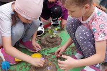 Песочница – это место притяжения всех малышей. Для них здесь много увлекательных игр, занятий, возможностей проявления творческих способностей. В помощь им – формочки, лопатки, мелкие игрушки, камешки, травинки, ветки и многое другое. Используя подручные материалы и украшения, дети воплотили в жизнь свои песочные фантазии, которые также быстро «растворились» в песке, как и появились из песка.