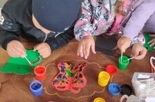 Воспитатель Цмиева С. Р. вместе с воспитанниками младшей группы "Бусинки" нарисовали бабочек с помощью нетрадиционной техники рисования.