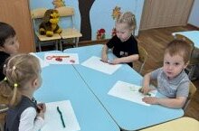Сегодня воспитанники младшей группы развивали мелкую моторику при помощи лепки. Они учились раскатывать жгутики,соединять элементы способом прижимания,лепить крендельки. -
