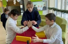 А на первом этаже, в фойе, во время перемен проходит турнир по армрестлингу.