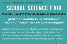 16 марта в Школе прошла научно-практическая конференция. Было представлено более 25 проектов! Мы благодарим всех ребят за активное участие в Школьной ярмарке идей, за творческий подход к представлению материалов исследований и увлекательные научные дискуссии! Представляем результаты! В составе комиссии работали учителя нашей Школы и ученики-победители прошлого года. По итогам обсуждения были отмечены несколько работ и принято решение об издании сборника тезисов работ всех участников Конференции! От всей души поздравляем победителей!