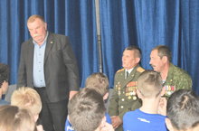 Сегодня в Лицее прошел урок мужества с приглашением почетных и уважаемых гостей: Рамазанова Альберта Алексеевича, подполковника запаса, командира танковой бригады в Таджикистане, Плеханова Сергея Александровича, председателя ветеранов Афганистана и других локальных конфликтов, Бугоркова Николая Викторовича, сержанта запаса, участника локальных конфликтов Горный Карабах и др..